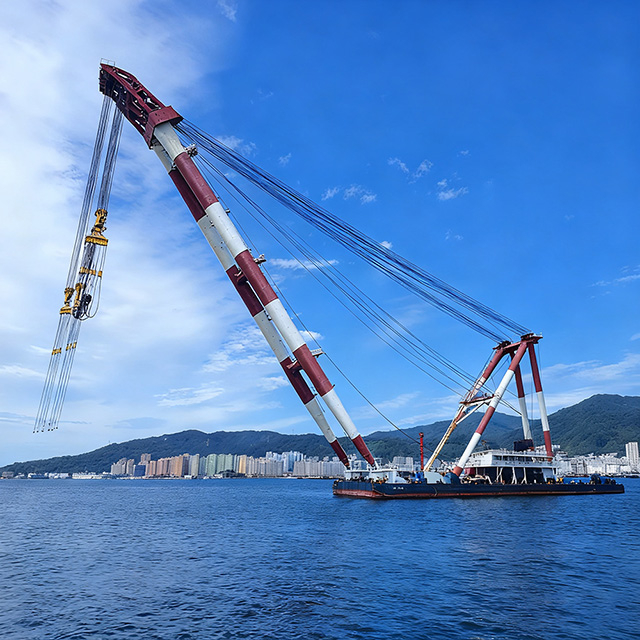 Engineered for deployment in transitional water depths (5-100 m) under IMCA D 016 guidelines, excelling in port infrastructure erection such as precast segmental bridge assembly and caisson immersion with metocean tolerances up to Beaufort force 5 (Hs 2 m, wind 20 knots). Facilitates marine salvage per IMO Resolution A.949(23), including subsea debris clearance and vessel righting via controlled tandem lifts in currents up to 2 knots. Adaptable to renewable energy projects, such as offshore wind jacket piling and substation module installation compliant with IEC 61400-3, in significant wave periods (Tp) 8-12 s. Supports dredging logistics by transloading spoils to hopper barges in estuarine environments and by providing temporary heavy-lift in inland waterways for lock gate maintenance or pipeline crossings. Ensures operational integrity across global domains through ISM Code adherence, flag-state surveys, and risk-based inspections per the ABS Guide for Floating Installations.